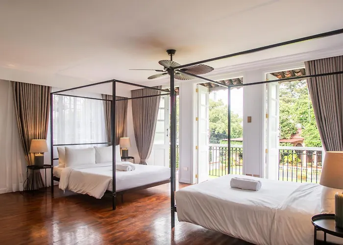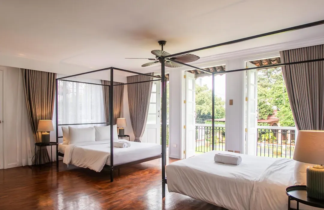 プライベートなプールを提供する寝室1室のMiranamin Nest Gumamela - Family Suite In Historic Home With Indoor Plunge Pool, Garden View, Pet-Friendly, Self-Service Breakfast マニラ市は、Camp Crame historical markerから歩いて6分です。 ビジネスでもレジャーでもWiFiを利用することができます。